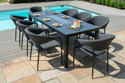 Pebble 8 Seat Rectangular Fire Pit Dining Set | Charcoal