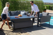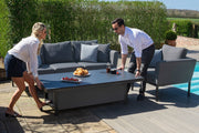 The Outdoor Fabric Pulse 3 Seat Sofa with Rising Table in charcoal grey offers ultimate flexibility with the inclusion of the height adjustable, rising table - allowing you to easily change between a dining table and coffee table in a matter of seconds.