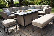 Pulse Left Handed Rectangular Corner Dining Set with Fire Pit | Taupe