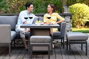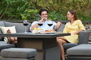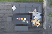 The Pulse Collection, we have now added the Left Handed Corner Range. The Pulse Corner Dining includes our most popular feature, the rising table. Designed in all our outdoor fabric colours, leave this set outside all year round due to the durability of the all weather fabric design.