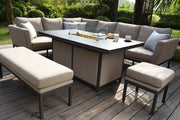 Pulse Rectangular Corner Dining Set with Fire Pit | Taupe