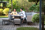 The Pulse Rectangular Corner Dining Set with Rising Table is the perfect way to combine relaxation with comfortable dining, with the versatility to easily swap from an afternoon coffee table to evening dining table in moments. The corner sofa style seats allow you to make the most of the space in your garden, and the large table means there is plenty of room for the largest of feasts, the set also includes stools so that you can feed the entire family in comfort.