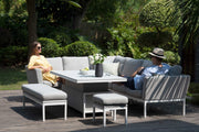 The Pulse Rectangular Corner Dining Set with Rising Table is the perfect way to combine relaxation with comfortable dining, with the versatility to easily swap from an afternoon coffee table to evening dining table in moments. The corner sofa style seats allow you to make the most of the space in your garden, and the large table means there is plenty of room for the largest of feasts, the set also includes stools so that you can feed the entire family in comfort.