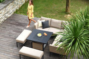 The Pulse Square Corner Dining Set with Rising Table is the perfect way to combine relaxation with comfortable dining, with the versatility to easily swap from an afternoon coffee table to evening dining table in moments. The corner sofa style seats allow you to make the most of the space in your garden, and the large square table means there is plenty of room for everyone. The set also includes benches, so that you can feed the entire family in comfort.