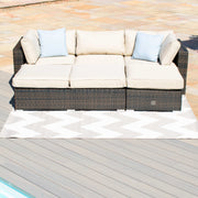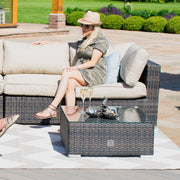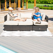 The Rio Corner Group pushes the boundaries of versatility. Configurable as everything from a large daybed to a sunlounger and sofa, you will be sure to find a combination that is perfect for you. The multi-purpose footstool also comes with glass for when you need a coffee table instead of additional seating. By utilising a modular design, this set can be rearranged to suit your mood or event of the day.