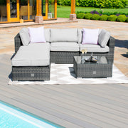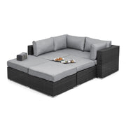 The Rio Corner Group pushes the boundaries of versatility. Configurable as everything from a large daybed to a sunlounger and sofa, you will be sure to find a combination that is perfect for you. The multi-purpose footstool also comes with glass for when you need a coffee table instead of additional seating. By utilising a modular design, this set can be rearranged to suit your mood or event of the day.
