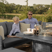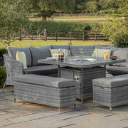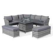 Santorini Deluxe Corner Dining Set with Fire Pit Table (spray stone top | Cooking Pans) | Grey