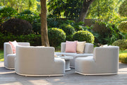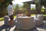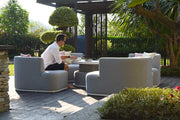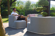 The Snug is a true feat of masterful ingenuity and contemporary design. You'd be easily forgiven for questioning whether this was a sofa or a daybed. The Snug merges together to create a single cosy daybed, or just as easily comes part to form 4 separate chairs with a central footstool. Trusted by luxury yacht makers for deck furnishings, the fabric fibres are solution-dyed acrylic, allowing the colour to permeate to the very core of the fabric fibres; thereby creating a rich, fade resistant colour that stand the test of time. Even in the harshest climates. Truly guaranteed against the elements, the furniture can be left outside all year round