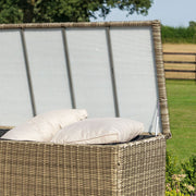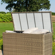 Practicality meets style with the Large Storage Box. This top loading storage box is perfect for keeping your cushions and other garden accessories free from dirt and dust when not in use. With a solid protective top and woven rattan sides, it perfectly complements your furniture sets, while keeping your garden tidy. In addition we have now included a waterproof lining inside the box which will provide extra protection for your cushions.