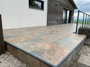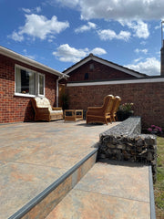 The termination trim is fixed round the peremiter of your paving area as per the installation instructions. The vertical paving tile is the inserted into the channel and held in place using a paving lower stop.