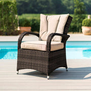 The Texas range from Maze is known for its sleek appearance and deep chairs with curved hollow arms. The Texas range is the perfect set to dine and relax with your friends and family. The contemporary design, comfortable cushions and finishing touches make this a great addition to your garden. The Texas range is available in both colours options which are brown and grey. The Texas range will be a perfect addition to your garden this summer. This set has an integrated ice bucket within the dining table.