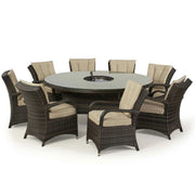 The Texas range from Maze is known for its sleek appearance and deep chairs with curved hollow arms. The Texas range is the perfect set to dine and relax with your friends and family. The contemporary design, comfortable cushions and finishing touches make this a great addition to your garden. The Texas range is available in both colours options which are brown and grey. The Texas range will be a perfect addition to your garden this summer. This set has an integrated ice bucket within the dining table and a glass lazy susan.