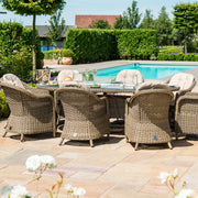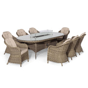 Winchester 8 Seat Oval Fire Pit Dining Set with Heritage Chairs | Natural