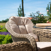The Winchester 8 Seat Oval Fire Pit Dining Set with Heritage Chairs brings a touch of luxury to your al fresco dining. The oval table topped with toughened glass teamed with the eight comfortable chairs complete with base and back cushions to make this the perfect set to share breakfast, lunch, or dinner! In addition this table has been integrated with a gas Fire Pit system which will allow you enjoy your garden furniture to the late hours in the evening and comes with a metal inlay which covers the Fire Pit when not in use. All of our Fire Pit systems are CE registered and have a BTU of 50,000 (British Thermal Unit is a unit that measures the heat generated by the burner). On average, depending on the setting used, our Fire Pits will produce approximately 6-7 hours use for a 7KG gas bottle. We recommend using a propane gas bottle, which can be stored underneath the table. Please note the ice bucket feature is not included with this product.