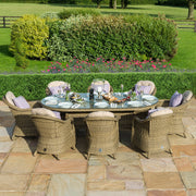 Winchester 8 Seat Oval Ice Bucket Dining Set with Heritage Chairs and Lazy Susan | Natural