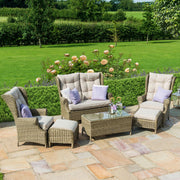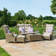 The Winchester range combines the classic look of the Winchester weave with a beautiful grey coloured weave that creates a timeless finish. The beige coloured cushions sit perfectly with the weave, creating a modern, elegant style. We recommend storing cushions inside overnight. As with all Maze products, it is made from the highest quality material, woven onto a powder coated aluminium frame that ensures its use all year, even through the harshest weather. The Winchester High Back Sofa Set typifies the attention to detail that has made Maze a market leader. The elegant high backs, comfortable cushions and toughened glass topped coffee table make it the perfect addition to any garden.