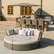 Never before has one set of furniture offered so much. Giving you the option to have a dining set, sofa set and daybed in one, this amazing lifestyle suite really is the only furniture you need this summer. Complete with a rising height table and four spacious sofas this set is the summer seasons must have item. Use it in its lower position with the included cushion to relax on the spectacular daybed in the afternoon sun, then swap the cushion for the glass top and raise the table to make this a stunning dining set for that perfect sunset meal. The day doesn't have to end there when you can lower the table to transform it to the stunning sofa set to keep relax into the evening in style.