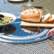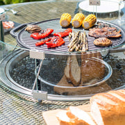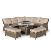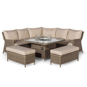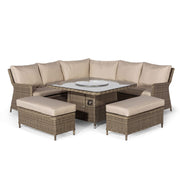 The Winchester Royal Corner Bench Set with Fire Pit ties together some of our most popular features into one product. The convenient corner seating space allows the set to easily complement any garden space, the generous benches for additional comfort, now available with the integrated Fire Pit Table, extending pleasant daytime into perfect evenings. A Lazy Susan (covers the fire pit when not in use). All of our Fire Pit systems are CE registered and have a BTU of 50,000 (British Thermal Unit is a unit that measures the heat generated by the burner). On average, depending on the setting used, our Fire Pits will produce approximately 6-7 hours use for a 7KG gas bottle. We recommend using a propane gas bottle, which can be stored underneath the table. Please note the ice bucket feature is not included with this product.