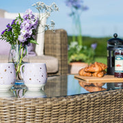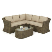 The Winchester Small Corner Group with Chair is recognisable for the thick shaped arms and backs to the set. The beige coloured cushions sit perfectly with the weave, creating a modern, elegant style. We recommend storing cushions inside overnight. As with all Maze products, it is made from the highest quality material, woven onto a powder coated aluminium frame that ensures its use all year. The Winchester Small Corner Group is recognisable for the thick shaped arms and backs to the set.