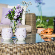 The Winchester Small Corner Group with Chair is recognisable for the thick shaped arms and backs to the set. The beige coloured cushions sit perfectly with the weave, creating a modern, elegant style. We recommend storing cushions inside overnight. As with all Maze products, it is made from the highest quality material, woven onto a powder coated aluminium frame that ensures its use all year. The Winchester Small Corner Group is recognisable for the thick shaped arms and backs to the set.