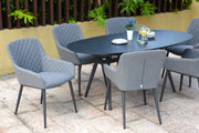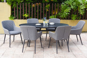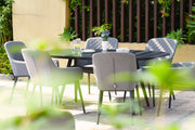 The Zest 6 seat oval dining set is a delightful synthesis of versatility, modernity and expressive style. The armchair is designed for maximum comfort, with a playful style to craft the look of your outdoor dining.