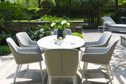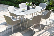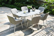 The Zest 6 seat oval dining set is a delightful synthesis of versatility, modernity and expressive style. The armchair is designed for maximum comfort, with a playful style to craft the look of your outdoor dining.