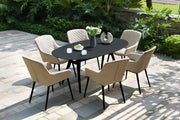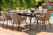 The Zest 6 seat oval dining set is a delightful synthesis of versatility, modernity and expressive style. The armchair is designed for maximum comfort, with a playful style to craft the look of your outdoor dining.