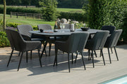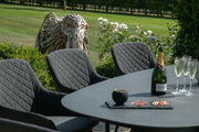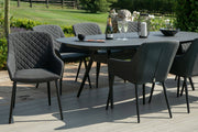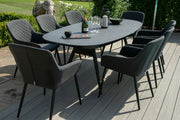 The Zest 8 seat oval dining set is a delightful synthesis of versatility, modernity and expressive style. The armchair is designed for maximum comfort, with a playful style to craft the look of your outdoor dining.
