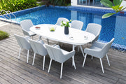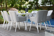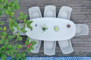The Zest 8 seat oval dining set is a delightful synthesis of versatility, modernity and expressive style. The armchair is designed for maximum comfort, with a playful style to craft the look of your outdoor dining.